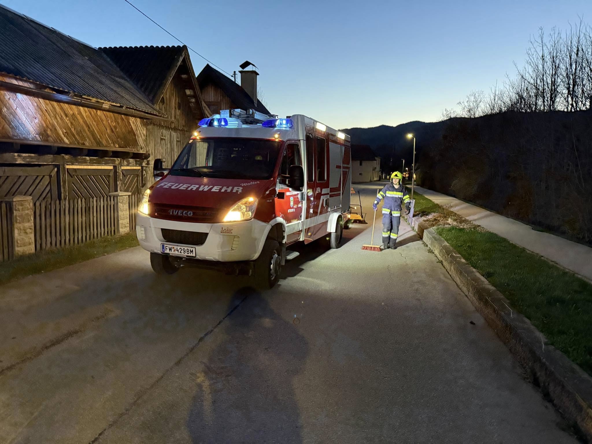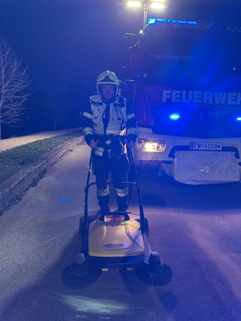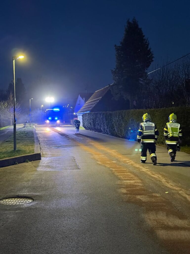 Am 03.04.2025 wurde die Feuerwehr Mitterdorf um 19:44 Uhr zu ausgelaufenen Betriebsmitteln im Ortsgebiet alarmiert.